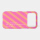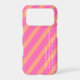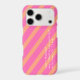 A short, personalized message of encouragement in Python programming language and stripes provide a tech, fashion forward design while protecting your phone. The design's background consists of light pink and orange diagonal stripes. The custom message is in white text. The font, color, and location of the text may be changed by using the Edit Design option.