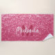 Light pink rose faux sparkles glitter Monogram Beach Towel