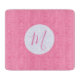 Glass cutting board shows a fractal background of light pink squiggly squares. Pink initial resides inside a white circle of squiggly squares. Lovely Mother's Day or birthday gift for mum.