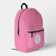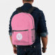 Backpack with feminine light pink squiggly squares and a personalised initial inside a white circle of squiggly squares. Perfect gift for the lady in your life for school or hiking. Could be a terrific Mother's Day gift for the right mum.