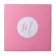 Ceramic decorative tile shows a fractal background of light pink squiggly squares. Pink initial resides inside a white circle of squiggly squares. Lovely Mother's Day or birthday gift for mum.