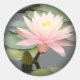 A light pink water lily in full bloom with a new bud just rising out of the water below it.