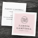 Elegant, professional business cards or personal profile cards with your custom logo, name and title/company name printed on the front on a light pink background with a white border around the edge of the card. On the back are customisable template fields for your name, title/company name/speciality and contact information. A minimal and classy design for any industry