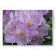 This closeup photo of the Rhododendron in bloom shows a light plum coloured flower with tissue-soft petals. The inner areas of the petals are accented with orange speckles which almost resemble leopard skin.