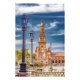 Looking towards the west end of the Plaza de España, there is a large tower that welcomes visitors to the landmark built in 1928 for the World's Fair. I captured this photo in September 2019, using the street lights to frame the tower as visitors meander about the plaza.