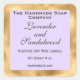 A label for candles featuring a gold foil border and light purple interior.