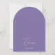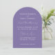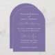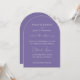 The wedding details are displayed in white text on a solid light purple background. The back of the invitation is light purple and white with the couple's last name or custom text along with the wedding date.