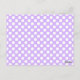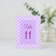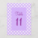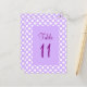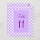 White polka dot pattern on light purple with room for a table number. You can customise and erase the word "Table" and centre the number.