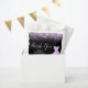 A beautiful light purple themed elegant watercolor dress gown on a black background with faux glitter at the top and bottom of the favour bag.