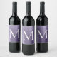 Modern Glam Classic Dusty Violet Light Purple Monogram Girly Script Metallic Steel Wine Label
