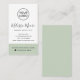 Vertical, white and light sage green or any colour business cards with customisable template fields for your custom logo, name, title/company name, contact information and social media on the front. You can change fonts, font and background colours with the design tool.