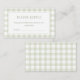 Light Sage Green Gingham Baby Shower Diaper Raffle Enclosure Card