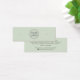 Light sage green or custom colour earring mini product display card with centred custom logo template and social media icons. The earring guides can be adjusted by adding and removing spaces in the template field, and by moving the whole element in the design tool.