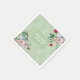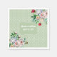 Pretty light green wedding napkins, with a white polka dot pattern background. Beautiful graphics of painted floral bouquets decorate two corners of the napkin, with a solid green text area, in the middle. Personalise with the bride and groom's names and wedding date. Matching products are available.