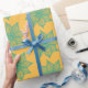 Light Sea Green on Yellow Sketchy Flowers Wrapping Paper
