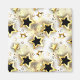 Seamless pattern of jewellery, gold and black stars on light textured background. Golden Star.