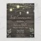Pink script typography. Faux wood texture background, jar lights, rustic country design. First Communion celebration budget invitations. You can add photos to the back or additional text if needed.