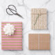 Light Summer Pink Lines On Faux Rustic Brown Kraft Wrapping Paper Sheet