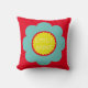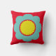 Light Teal and Yellow Flower on Bright Red Cushion