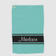 This design has a light teal background with black and light teal stripes. The name is in a script font and can be customised using the template field.