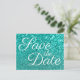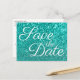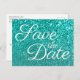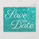 Create your own sparkly light teal green bokeh glitter photo wedding save the date.