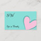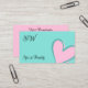 Make a lasting impression with this gorgeous and eye catching business card design featuring a cute pink heart on light teal and baby pink backgrounds with monogram and (employees-) photo.