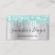 Light Teal Glitter Drips Silver Ombre Online Store Business Card