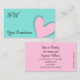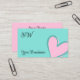 Light Teal Gorgeous Pink Heart with Monogram Cute Business Card