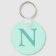 Light Teal Initial Letter Trendy Pastel Mint Blue Key Ring