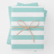 This set of wrapping paper sheets features a solid light teal coloured sheet with coordinating sheets of wide light teal stripes on white, and white polka dots on light teal.