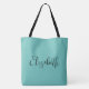 Replace Your Script Name Text Here Elegant Modern Minimalist Design Typography Template Mother's Day Light Teal Large Shopping Shoulder Tote Bag.