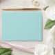 This light teal coloured A7 size envelope offers custom text on the back flap for your return address.
