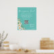 Pretty honeymoon fund sign features watercolor white daisies corner on light teal background with white customisable text blocks in modern fonts.