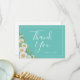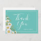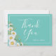 Pretty wedding thank you card design features watercolor white daisies corner on light teal background with white customisable text blocks in modern fonts