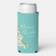 Pretty wedding seltzer can cooler features watercolor white daisies corner on light teal background with white customisable text blocks in modern fonts