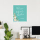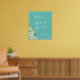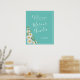 Pretty wedding welcome sign poster features watercolor white daisies corner on light teal background with white customisable text blocks in modern fonts