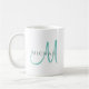 Light Teal White Initial Monogram Template Names Coffee Mug