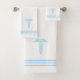 Light Turquoise Blue Caduceus & Stripes on White Bath Towel Set
