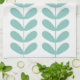 This fabulous mid century modern kitchen towel features light turquoise blue leaf buds on a stalk on a white background. This will make a fabulous addition to your home decor!