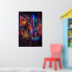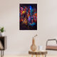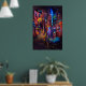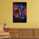An abstract painting of buildings in vividly neon light and light trail of vehicles passing by. This poster will makes your room become more colourful.