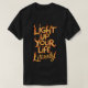 A fiery, hand-drawn typography piece with the phrase Light Up Your Life Literally in a bright orange flame design on a black background.
