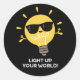 Light Up YOur World Positive Bulb Pun Dark BG Classic Round Sticker