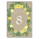 Light Yellow Khaki Ecru Rose Floral Wedding Table Number