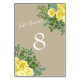 Light Yellow & Khaki Ecru Rose Floral Wedding Table Number