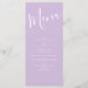 Light Yellow Lilac Purple Rose Floral Wedding Menu