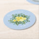 Light Yellow & Pale Blue Rose Floral Wedding Round Paper Coaster
