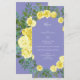 Beautiful Light Yellow & Periwinkle Blue peony & rose floral wedding invitations with abundant greenery. Perfect for a floral theme or traditional white wedding in the Spring or Summer. Customise the colour and text to make this wedding invite your own!