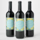 Light Yellow & Teal Aqua Rose Floral Wedding Wine Label