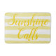 Sunshine Calls is written in bright sunny yellow. Pretty light yellow and white horizontal striped pattern. Cool trendy bathmat pattern with a beach vibe for the warmer spring and summer months for decor fun. Original Artwork Design © TamiraZDesigns.