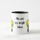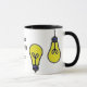 Got a bright idea? Show it with this fun lightbulb motif. The customisable mug slogan says 'Me and my bright ideas' but you can change it to a name or slogan of your choice.